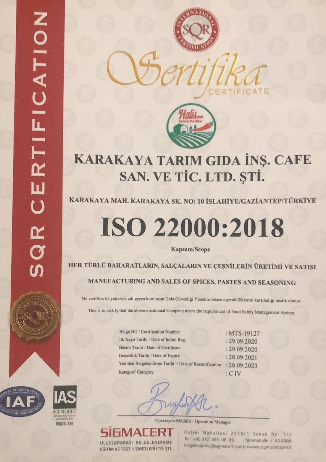 Daha Fazlası İçin TıklayınFirmamız, ürünlerinin kalitesini ve güvenliğini her zaman en üst seviyede tutmayı ilke edinmiştir. Bu doğrultuda, üretim süreçlerimizde en yüksek standartları sağlamak için çeşitli ulusal ve uluslararası sertifikalara sahip olup, müşterilerimize güvenli ve doğal ürünler sunmak için titizlikle çalışıyoruz.Sertifikalarımız, yalnızca ürünlerimizin kalitesini değil, aynı zamanda çevreye ve topluma duyduğumuz sorumluluğu da yansıtmaktadır. Her bir sertifika, bizlere güvenen müşterilerimize kaliteli ve sağlıklı ürünler sunma taahhüdümüzü somut bir şekilde gösterir.Bizim için her sertifika, müşteri memnuniyetini ve sürdürülebilirliği hedefleyen yolculuğumuzda önemli bir adımdır. Kaliteyi ve doğallığı garanti eden bu sertifikalarla, sektörümüzdeki liderliğimizi pekiştiriyor ve size en iyi hizmeti sunmaya devam ediyoruz.